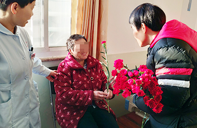 二病区的陈阿婆今年72岁,住院第一天,接过医护人员赠与的康乃馨后,嘴里一直念叨着感谢感谢,我都几十年没收过鲜花了,谢谢你们的关心,看来真选对了医院,我很放心!